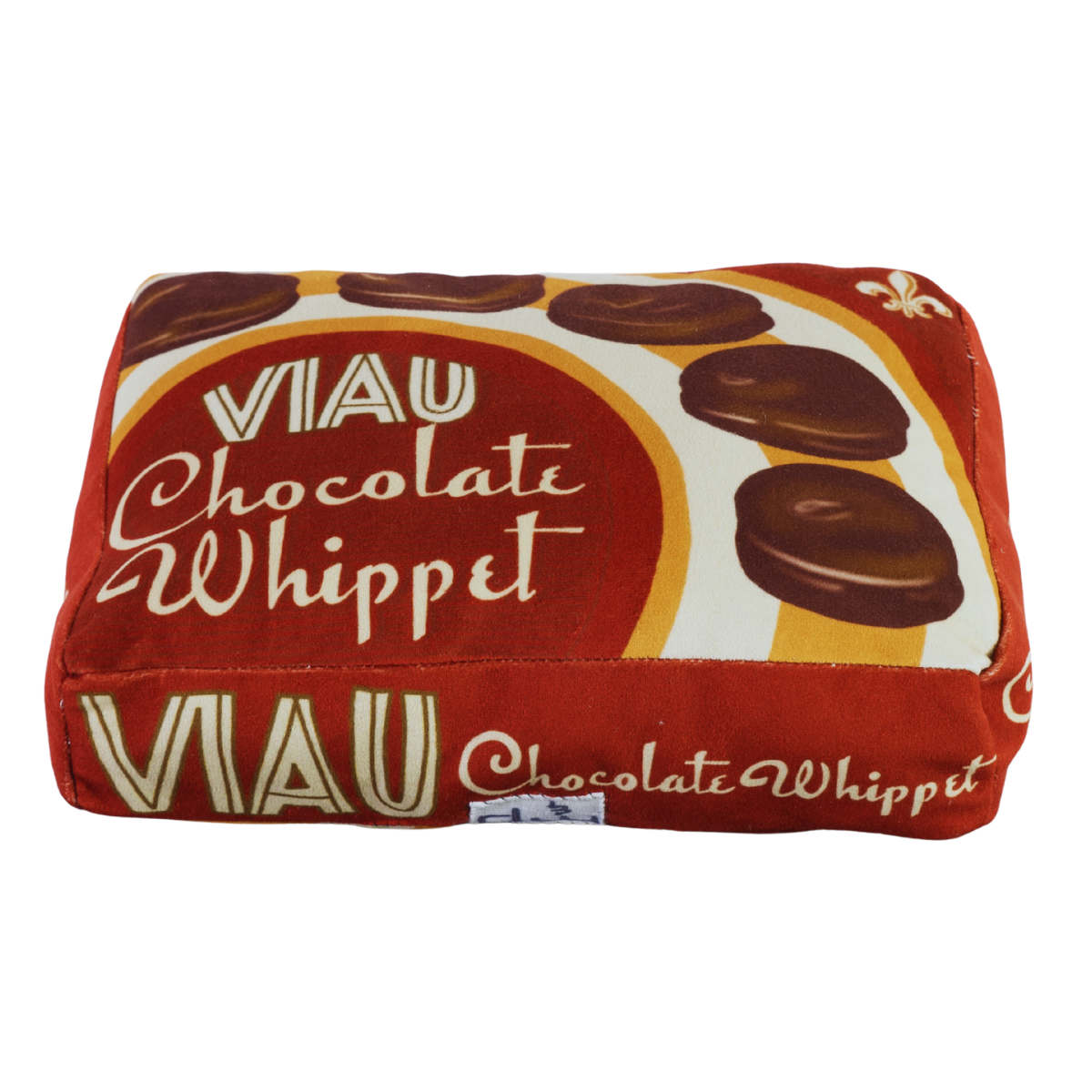 Reproduire la boîte ancienne du Whippet en coussin, en un seul exemplaire (11 × 8 × 3 pouces), c’est figer ce rapport lent et précieux à la gourmandise. L’objet devient une sculpture-mémoire, un hommage doux à ces après-midis chez les grands-parents, où le temps s’étirait et où chaque bouchée comptait.